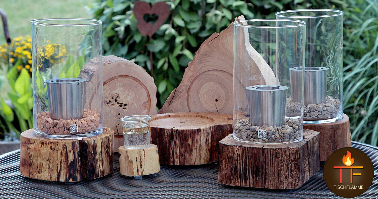 Eine Tischflamme ist ein Tischfeuer für den Innen- und Außenbereich mit biologischem Brenngel, welches ein natürliches Flammenspiel von ca. 110 Minuten Dauer bestaunen lässt.